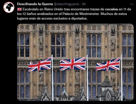 El semanario The Sunday Times publicó un informe señalando que se encontraron rastros de cocaína en varios lugares del Parlamento inglés.