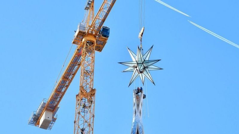 Con 12 puntas y un peso de 5,5 toneladas, es el remate de la Torre de la Virgen, que este miércoles fue inaugurada en la basílica de la Sagrada Familia.