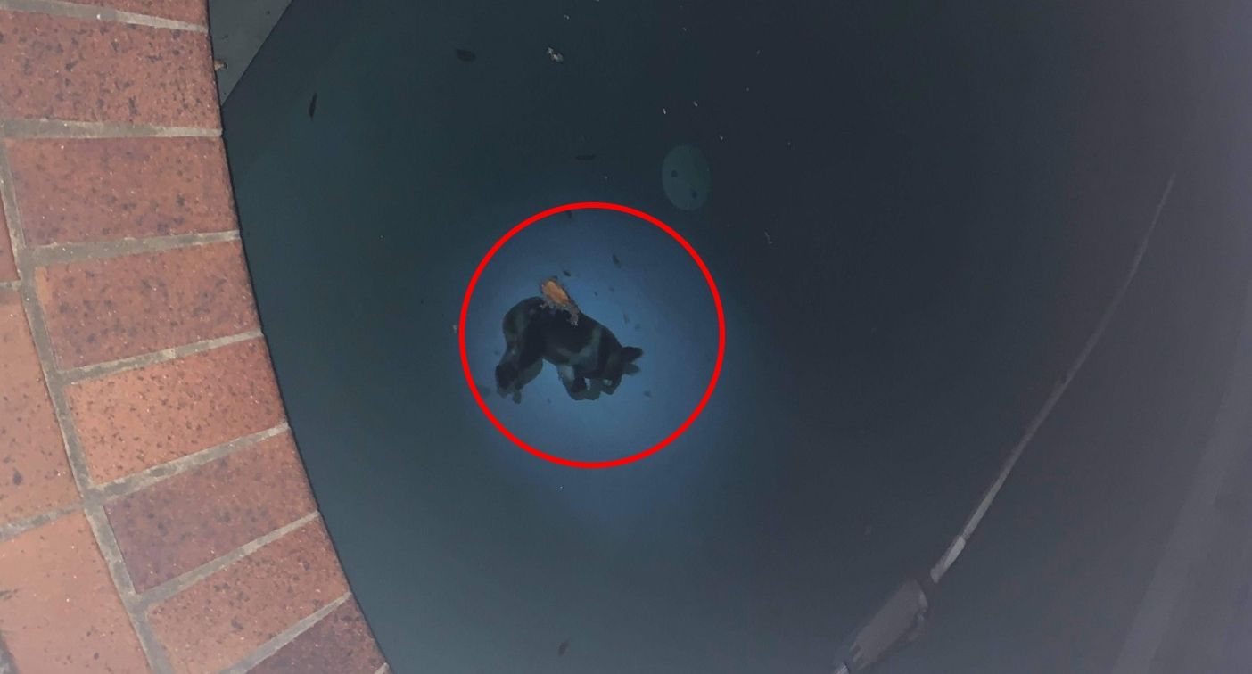 En la foto, Amy hace foco en un koala ahogado en el fondo de una pileta en Queensland, Australia.