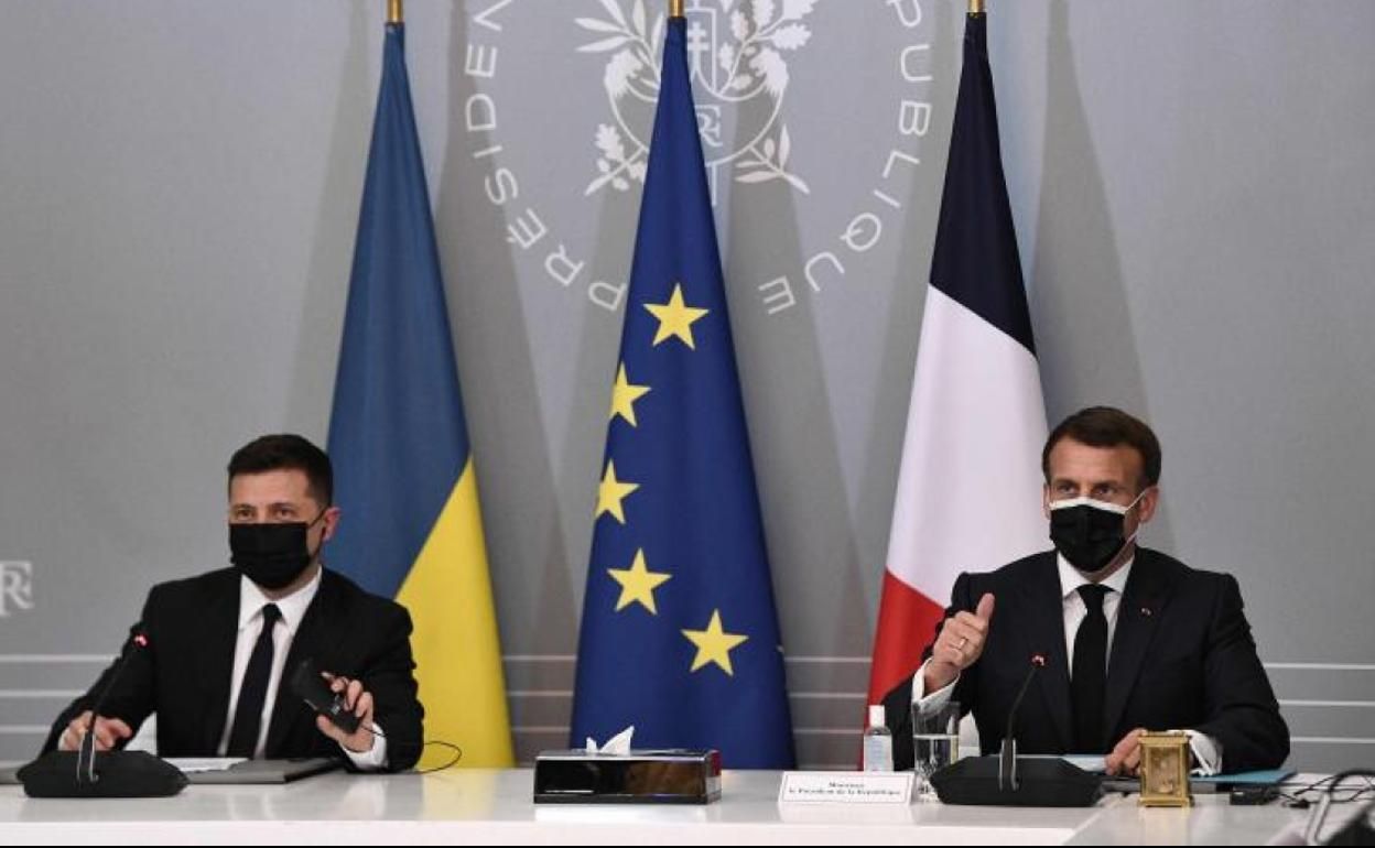 Ayer se reunieron en París el presidente francés, Emmanuel Macron, con el ucraniano Vladimir Zelenski, encuentro al que se sumó por videoconferencia la canciller alemana, Angela Merkel.