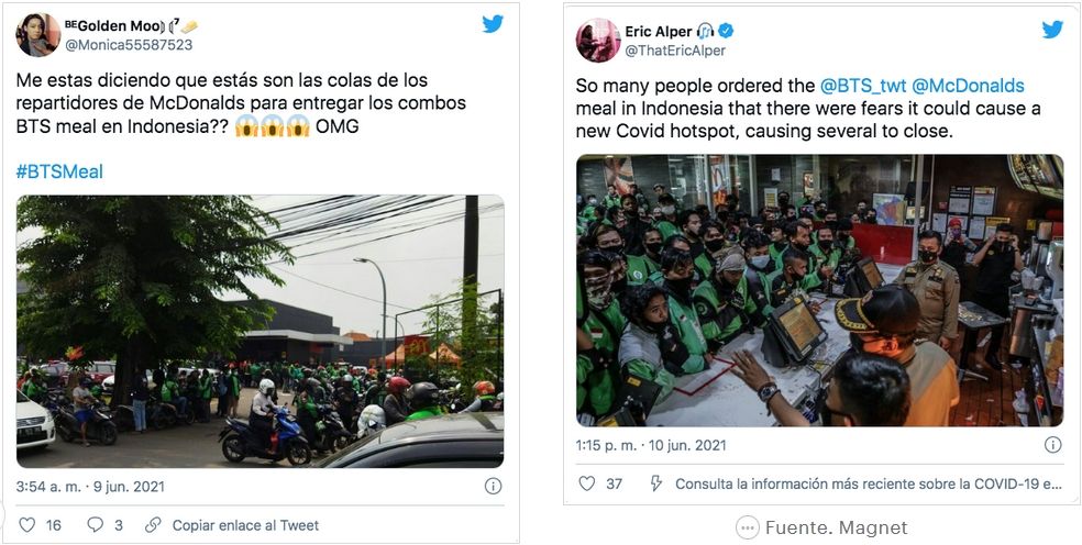 Hubo quienes se organizaron para dejar jugosas propinas a repartidores que lograran hacerse con un menú para entregar a domicilio y hasta movimientos de fans de BTS que sugerían llevar los combos a orfanatos para no desperdiciarlos.