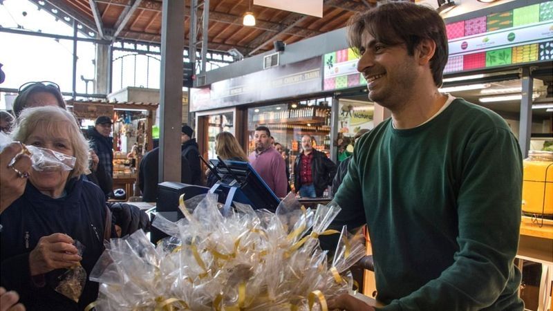 Ahjam llegó a abrir un puesto de venta de dulces árabes en un mercado de Montevideo en 2018, algo que describía como un "sueño" realizado.