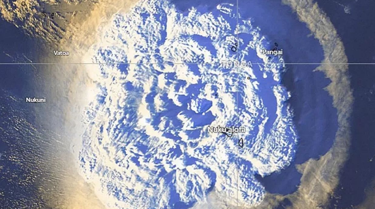 El volcán submarino entró en erupción el sábado, escupió una columna de ceniza al cielo y provocó advertencias de olas de 1,2 metros. La erupción fue tan fuerte que se pudo escuchar en Nueva Zelanda, a 2.383 km de Tonga.