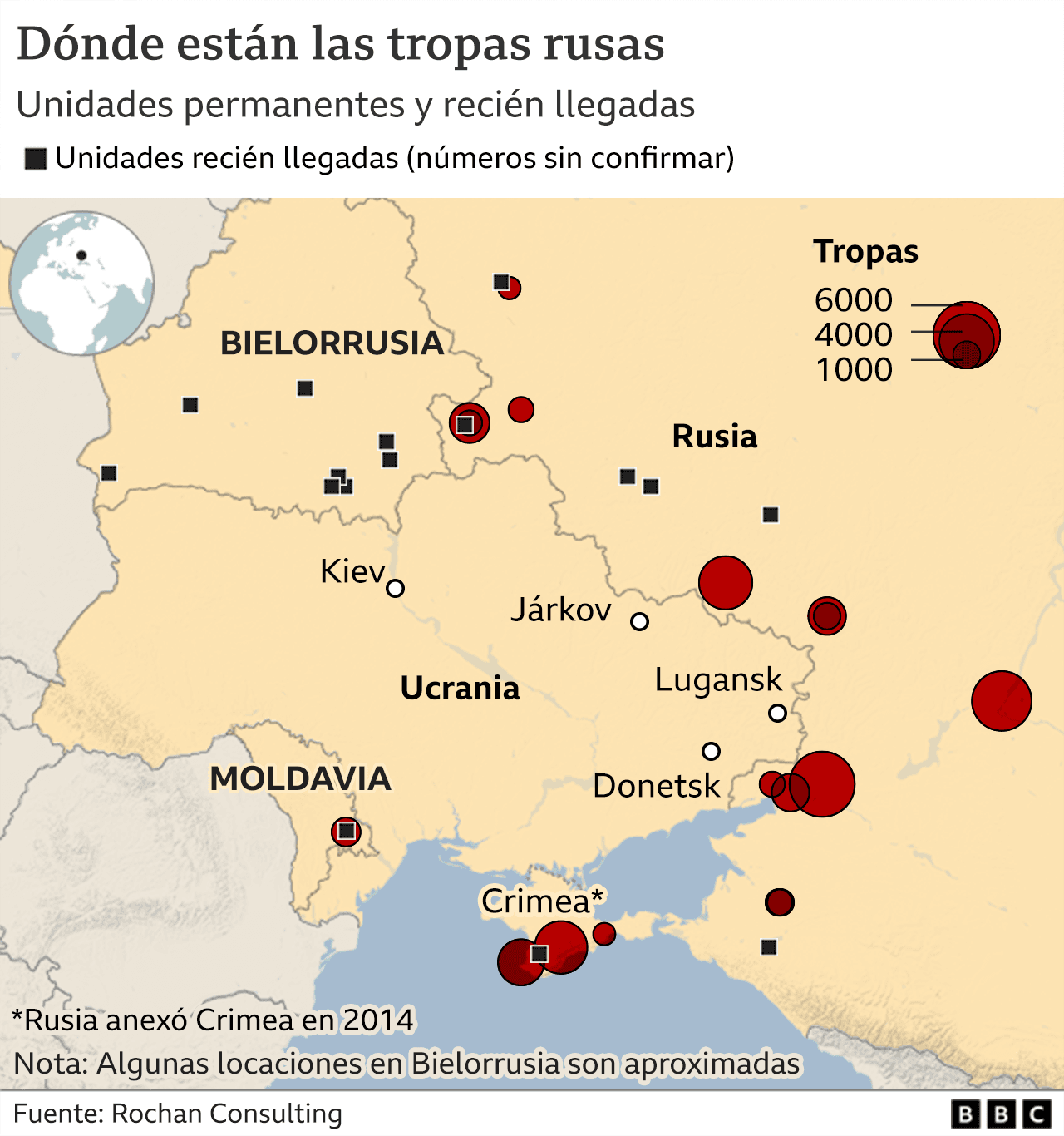 Agregó que no hay planes para despegar las tropas en la propia Ucrania.
