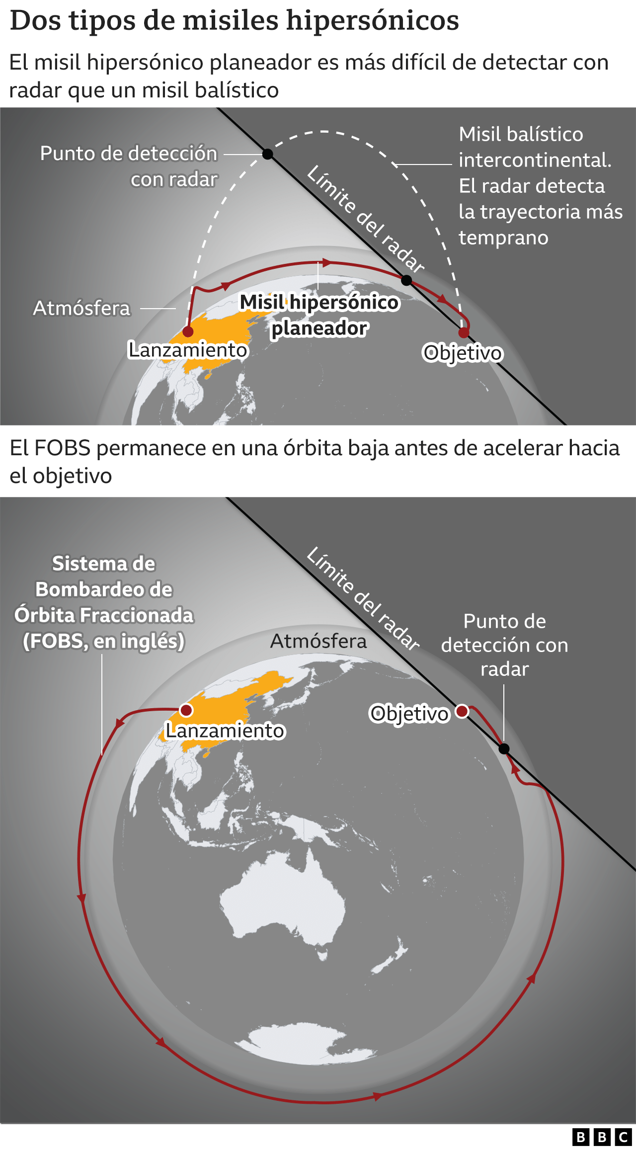 Pero hay un área donde Occidente está quedando peligrosamente rezagado respecto a Rusia y China. Son los misiles hipersónicos, proyectiles súper potentes que pueden volar a cualquier punto entre cinco y 27 veces la velocidad del sonido y cargar ojivas convencionales o nucleares.