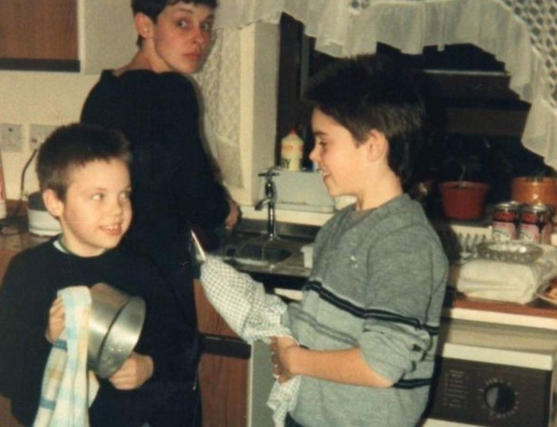 Paul Boggie (derecha) con uno de sus hermanos y su madre