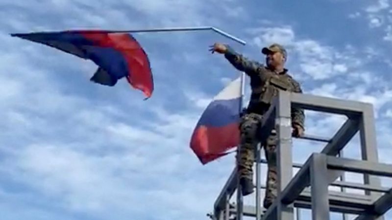Momento en el que el ejército ucraniano retira la bandera rusa de un edificio gubernamental de Lyman.