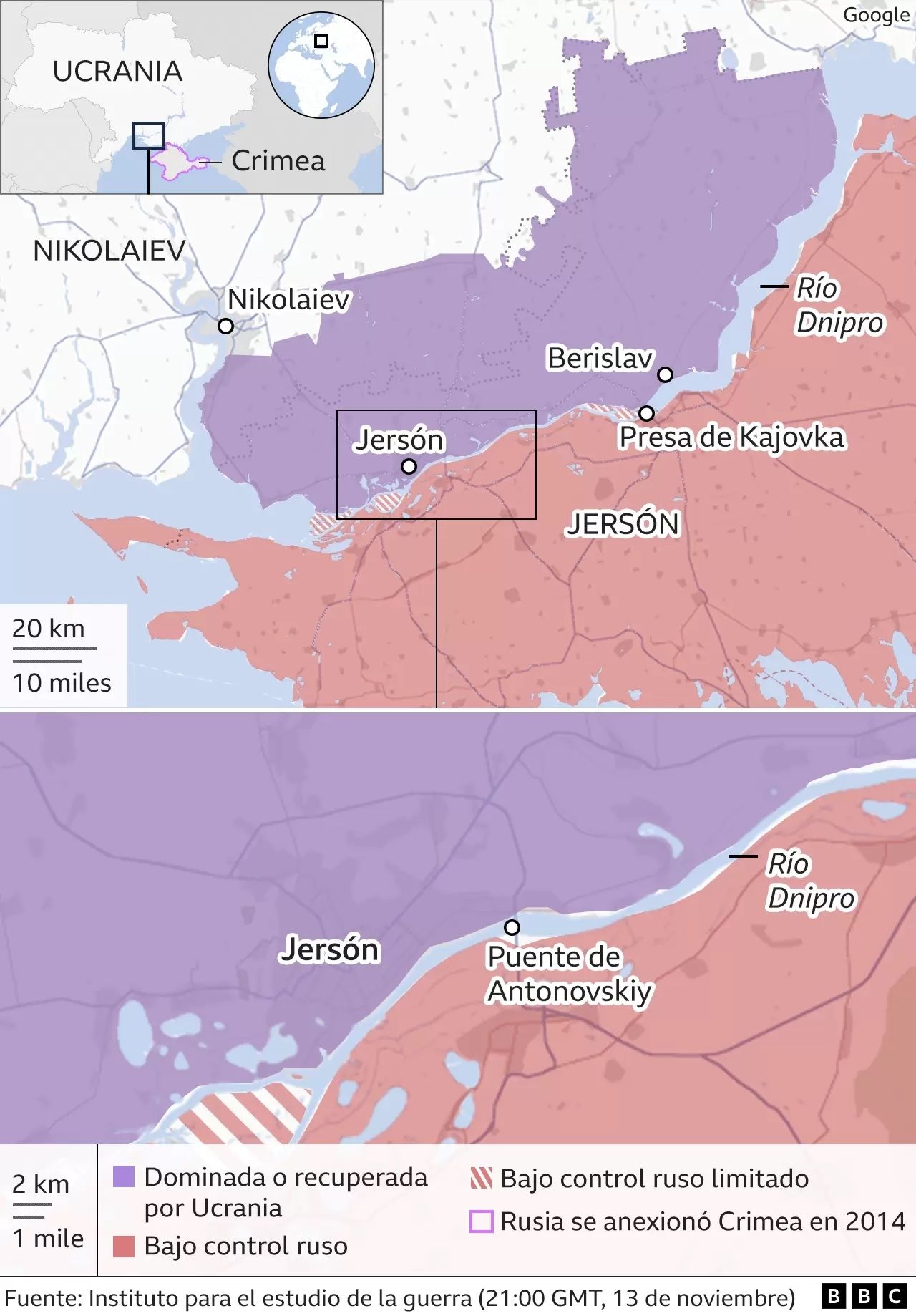 Las tropas ucranianas entraron el viernes en Jersón después que Moscú ordenara la retirada de sus fuerzas armadas del territorio, en lo que supone un revés para Rusia. A pesar de ello, el Kremlin insiste en que el territorio sigue siendo ruso.