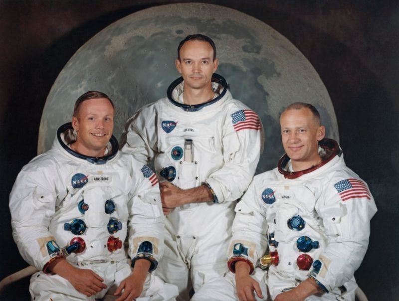 Los astronautas estadounidenses Neil Armstrong, Edwin "Buzz" Aldrin y Michael Collins partieron hacia la luna el 16 de julio de 1969, donde aterrizarían cuatro días después.
