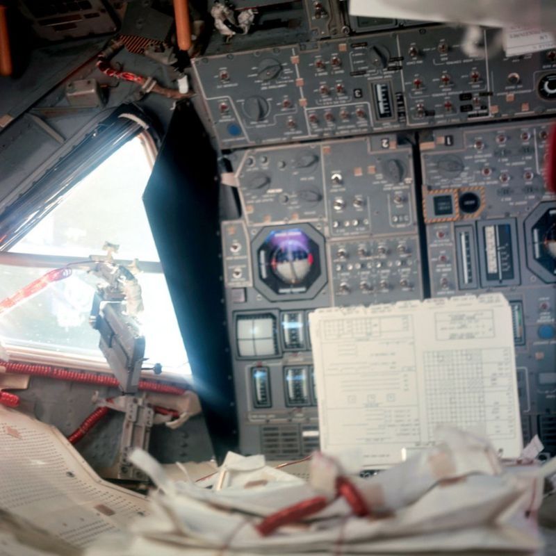 Interior del módulo lunar del Apolo 11.