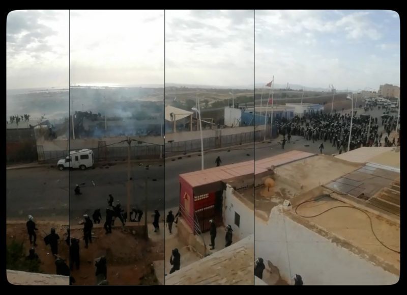 Los videos muestran a las fuerzas de seguridad marroquíes lanzando gases lacrimógenos y bombas de humo en el espacio.