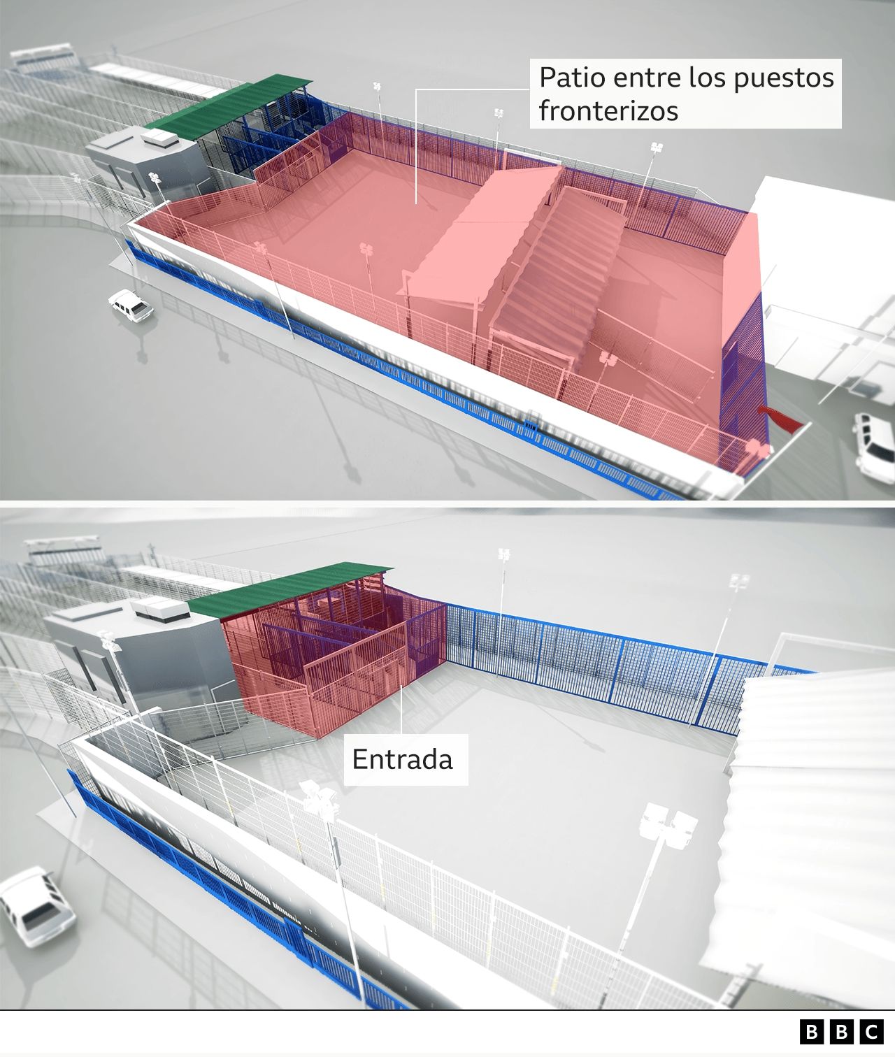 Un equipo de la BBC también obtuvo acceso exclusivo al complejo fronterizo Barrio Chino, lo que nos permitió comparar las imágenes de video con lo que encontramos dentro.