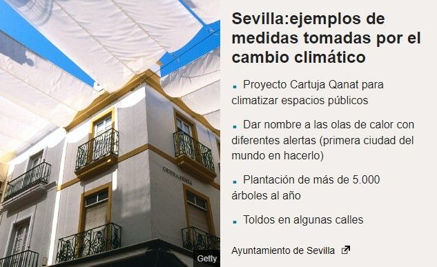 El calor extremo ha convertido a las calles de Sevilla en "un territorio hostil", dijo a BBC Mundo José Sánchez Ramos, profesor del departamento de Ingeniería Energética de la Universidad de Sevilla.