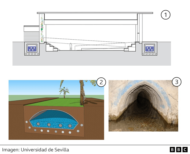 Perea explicó a BBC Mundo que "el sistema de agua que tiene Cartuja Qanat es un sistema de circuito cerrado".