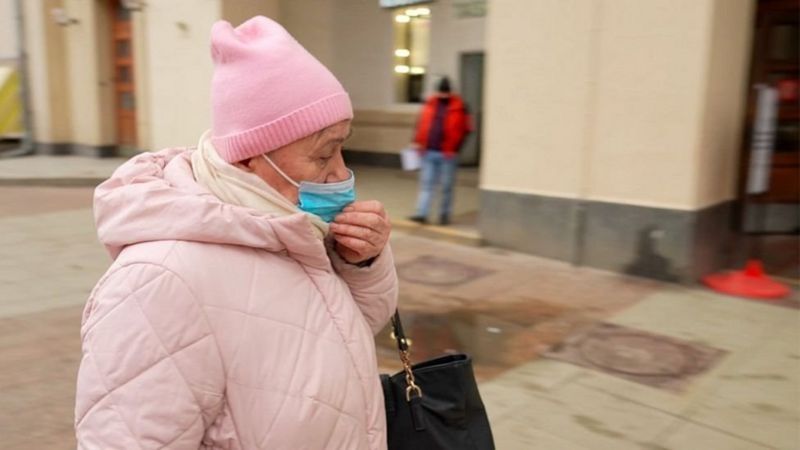 Una mujer con un abrigo rosa frambuesa y sus anteojos sobre su mascarilla también está segura de que la invasión fue una buena decisión. "Sobreviviremos y estaremos bien. Tenemos un país grande, rico en recursos. Nadie podrá ponernos de rodillas con sanciones".