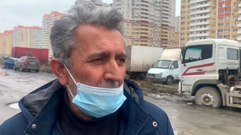 Un hombre con una gorra de béisbol habla de "proteger a los rusos" en Ucrania. Responsabiliza a los ucranianos y dice que es "culpa de ellos que terminaron en esta situación".