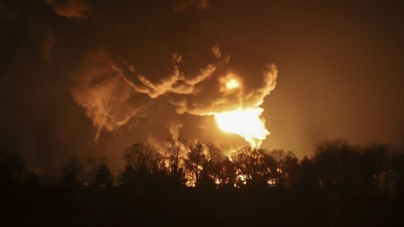 Autoridades de Vasylkiv, cerca de Kiev, informaron que un depósito de petróleo fue alcanzado por un ataque con misiles rusos.