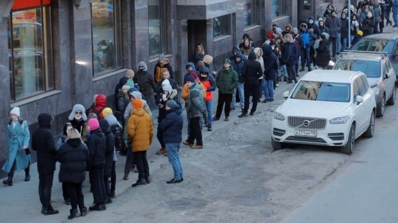 Para los rusos, todo esto trae recuerdos de lo que sucedió cuando el presidente Putin anexó Crimea en 2014 y la gente hizo cola durante horas para obtener dinero en efectivo.