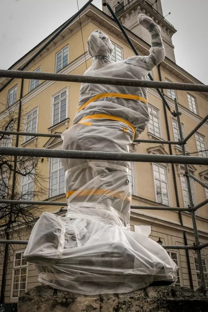 Pero los preparativos para un ataque estaban en marcha y muchas estatuas en el centro de la ciudad, un sitio del Patrimonio Mundial de la Unesco, estaban envueltas en sábanas protectoras.