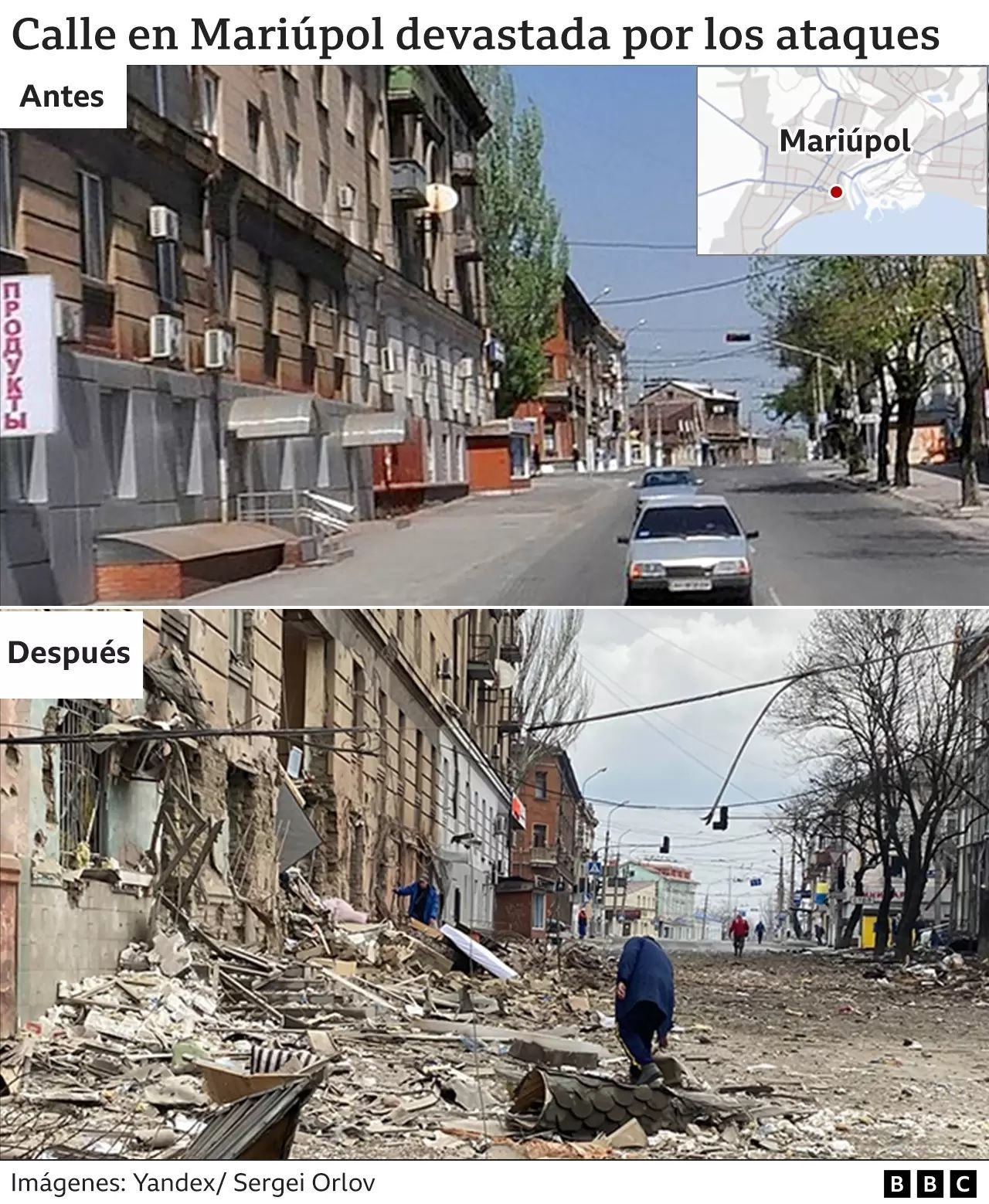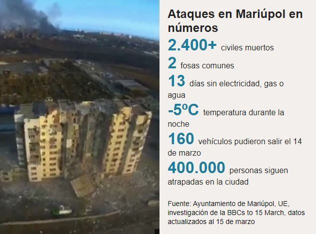 Orlov también señaló a la BBC que las fuerzas rusas entraron en el hospital más grande de Mariúpol y están impidiendo que médicos y pacientes abandonen el edificio.