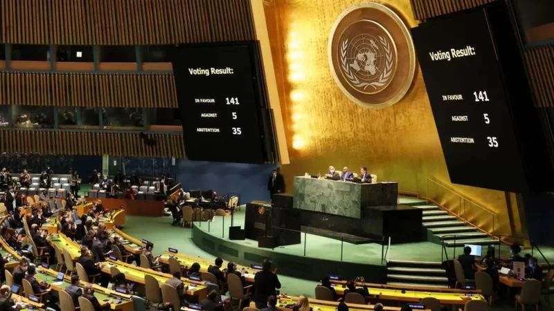 En tanto, la Asamblea General de Naciones Unidas aprobó por 141 votos de 193 naciones una resolución que condena a Rusia por su agresión a Ucrania y demanda la retirada incondicional de tropas.
