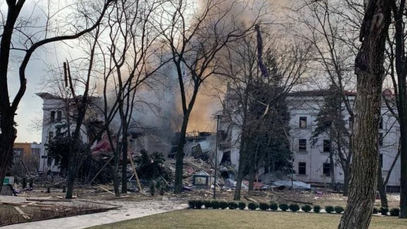 El teatro de Mariupol fue bombardeado el miércoles 16 de marzo de 2022, informaron las autoridades locales.