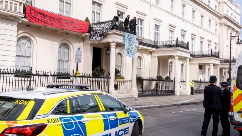 Considerado como uno de los barrios más exclusivos de todo el mundo, Belgravia se convirtió a mediados de marzo en el centro de las protestas en Londres contra el dinero ruso en Reino Unido, luego de que un grupo de manifestantes ocupara una mansión en el número 5 de Belgrave Square.