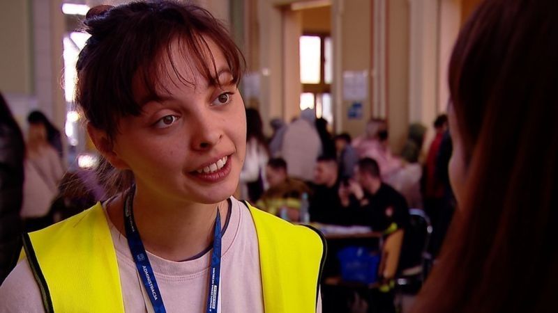 Acompaño a Elzbieta Jarmulska, más conocida como Ela, a un centro de refugiados donde se asegura de mostrar su identificación y prueba de residencia a los funcionarios, antes de preguntar si alguien quiere ir a Varsovia.
