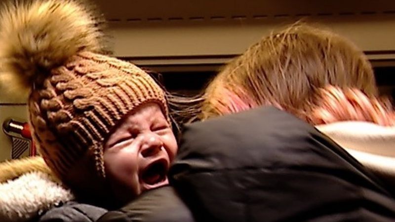 Son principalmente mujeres y niños, ya que el gobierno ucraniano obliga a los hombres menores de 60 años a quedarse en el país y luchar.