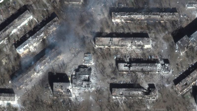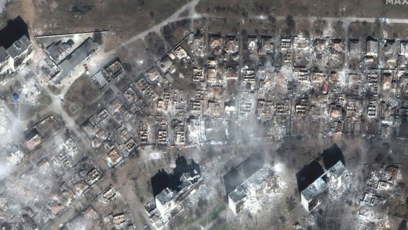 Pese a que Moscú alega que no ataca blancos en donde hay civiles, zonas residenciales en Mariúpol han sido reducidas a escombros, según las fotos de satélite.