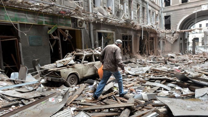 Járkiv y las demás ciudades y pueblos han sufrido graves daños y, hasta donde sabemos, muchas víctimas civiles. La sede del gobierno local de Járkiv resultó gravemente dañada en un ataque con misiles que se filmó y divulgó en video.