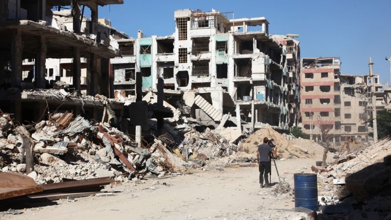 Ghouta Oriental (Siria) con el camarógrafo de la BBC Nik Millard.