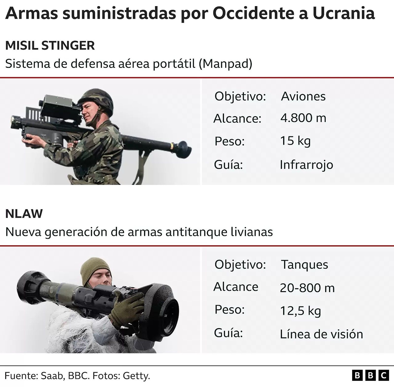 Los números exactos son difíciles de conseguir. La semana pasada, Wallace le dijo a la BBC que Occidente había entregado "miles" de armas antitanques y "más de mil" Stingers.
