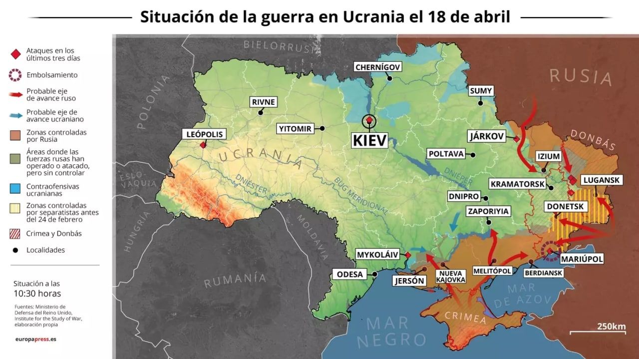 “Entendemos que el hecho de que los hayamos combatido y se hayan marchado, y que estén huyendo de Kiev -del norte, de Chernihiv y de esa dirección- no significa que, si son capaces de capturar Donbás, no vayan a acercarse más a Kiev”, añadió.