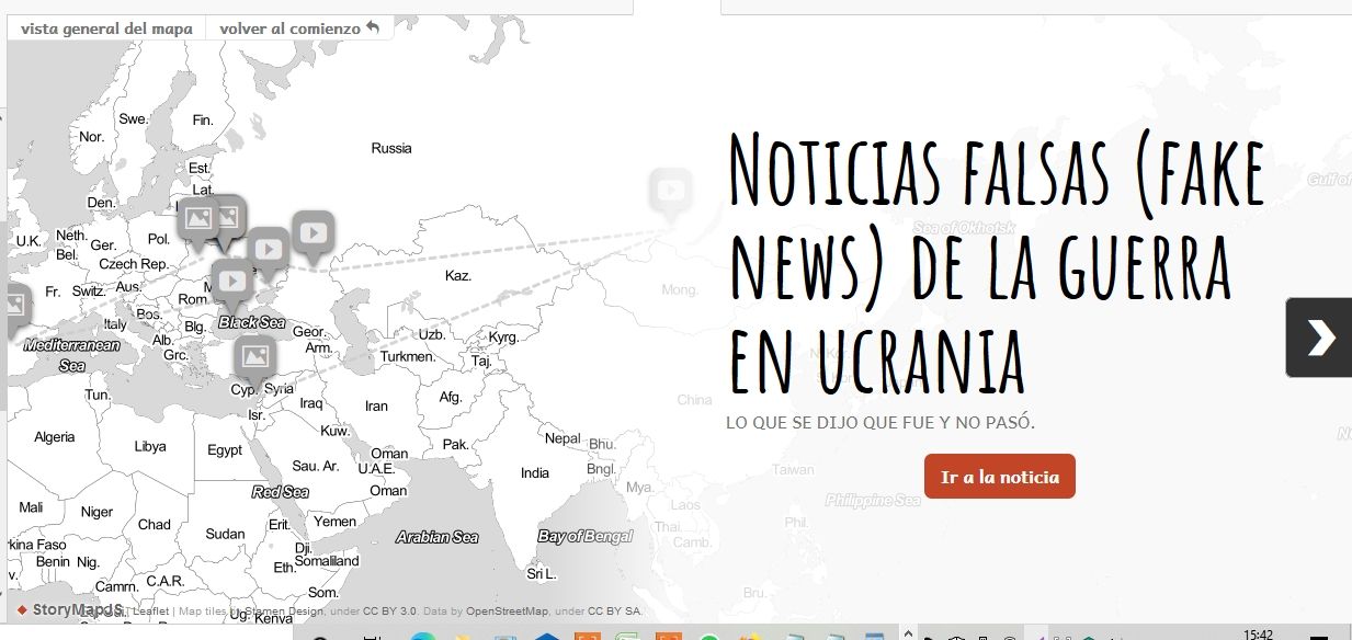 A continuación, haciendo clic en la siguiente imagen, recorré el informe multimedia con una decena de casos de fake news en la guerra de Rusia contra Ucrania.