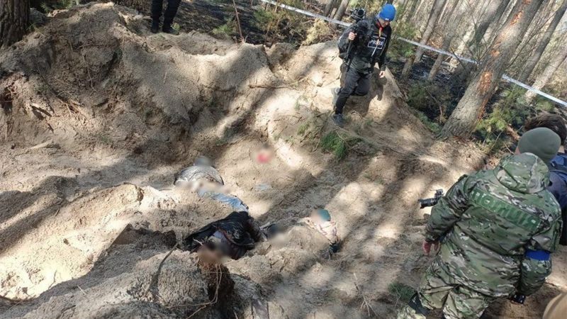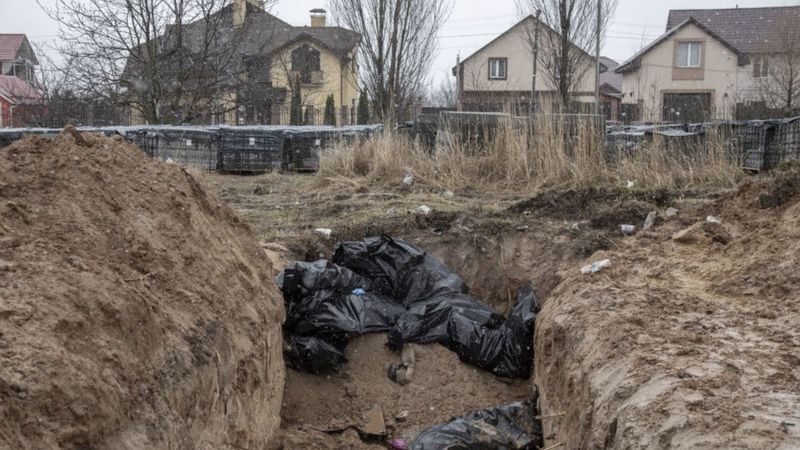 Pero lo que funcionarios ucranianos y reporteros de la BBC han visto allí tras la retirada de las tropas rusas ha dejado a muchos profundamente conmocionados.