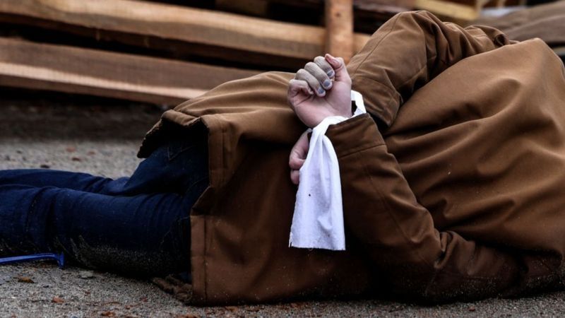 Algunos de los cuerpos hallados en Bucha fueron encontrados con las manos atadas. Esta fotografía fue tomada el 2 de abril.