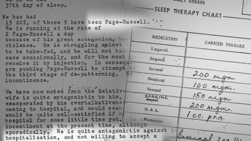 Luego, eran "desestructurados" mediante terapia electroconvulsiva de una potencia y frecuencia más alta que jamás antes, para reducirlos a un "estado vegetal, del cual se recuperarían a un estado mental más saludable", según la teoría de Cameron.