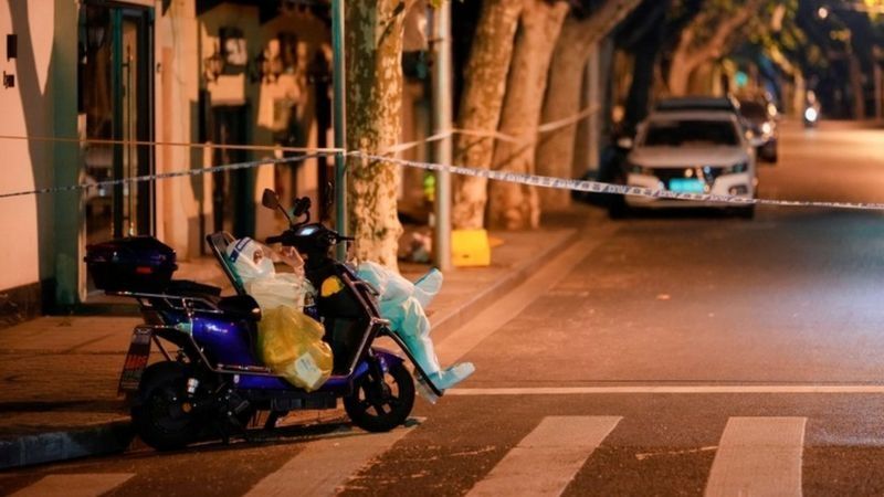 Bajo las estrictas medidas, casi 25 millones de personas permanecen encerradas en sus hogares en la ciudad de Shanghai.