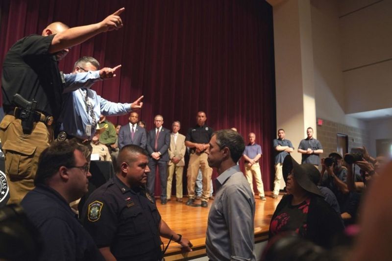 Beto O´Rourke enfrenta al gobernador Greg Abbott en una conferencia de prensa posterior a la masacre ocurrida en Uvalde. Los republicanos presentes sacaron del lugar al exlegislador y candidato a la gobernación el próximo noviembre