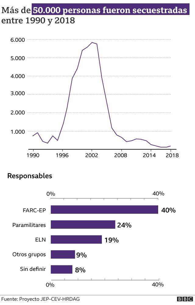 La CEV encontró que durante el conflicto se concretaron 50.000 secuestros, 40% de los cuales fueron responsabilidad de las FARC. Los paramilitares, por su parte, fueron responsables del 12% de estos casos de privación ilegítima de la libertad.
