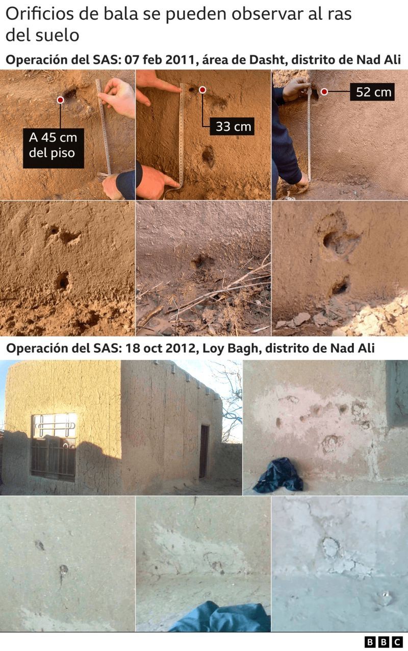 "Puedes ver por qué estábamos preocupados", dijo el investigador. "Las marcas de bala en las paredes tan cerca del suelo contradicen la versión de las fuerzas especiales".