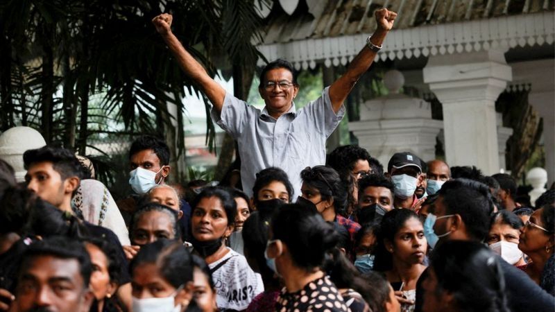 Dos meses después, el 9 de julio, centenares de manifestantes irrumpieron en las residencias oficiales de Rajapaksa y de Wickremesinghe, entonces primer ministro, obligando a estos a huir y a anunciar su dimisión.