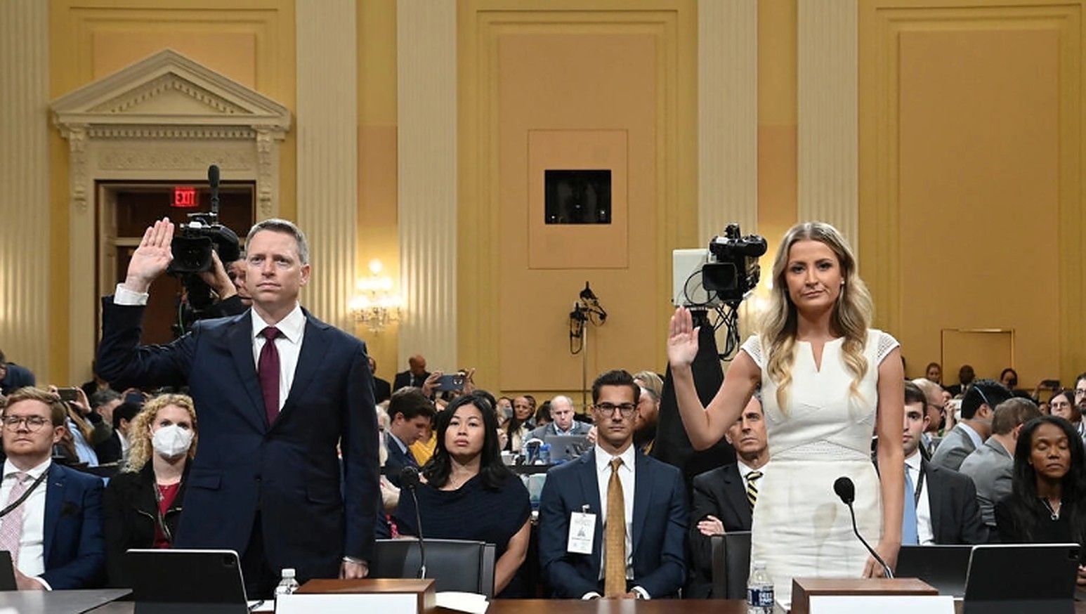 La sesión de este jueves contó con los testimonios presenciales del ayudante del asesor de seguridad nacional en el Gobierno de Trump, Matthew Pottinger, y de la entonces viceportavoz de la Casa Blanca, Sarah Matthews, que renunciaron tras el asalto.