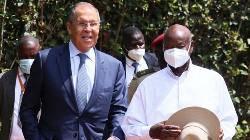 En una conferencia de prensa con Lavrov, el presidente de Uganda, Yoweri Museveni, reiteró su posición de neutralidad frente al conflicto en Ucrania. "No creemos en ser enemigos del enemigo de alguien", dijo.