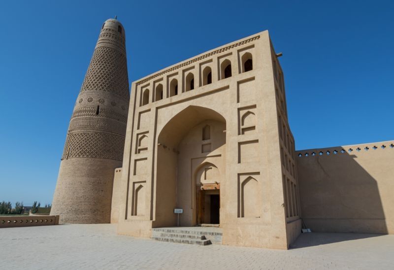 El minarete y la mezquita de Emin, en el oasis de Turfán, ubicado en la Ruta de la Seda.