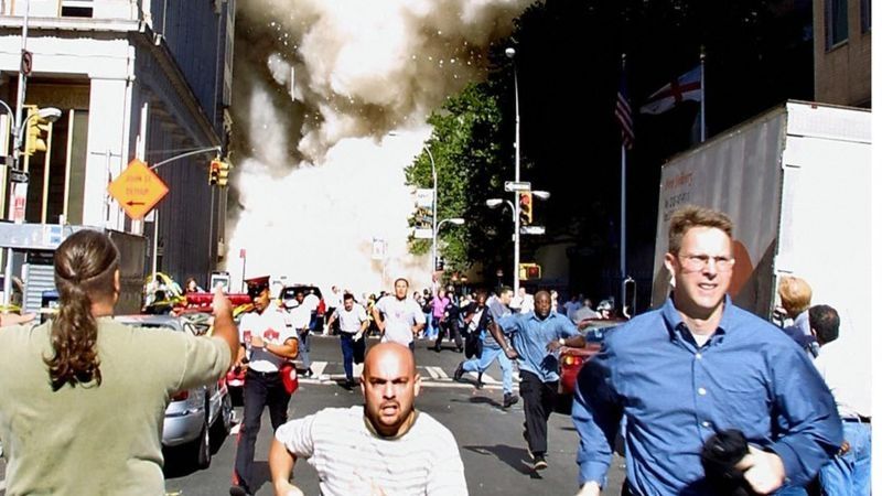 La referencia me la da que yo no veo al segundo avión estrellarse, simplemente veo la explosión que sale del otro lado del edificio y que me coge completamente desprevenido.