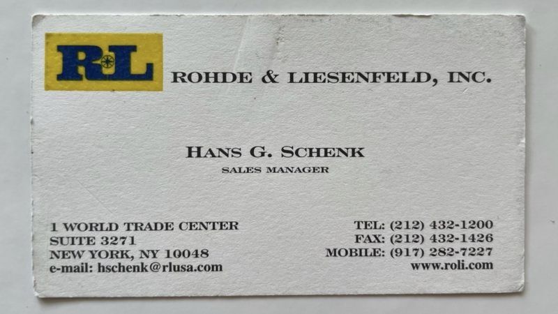 Tarjeta de visita de Hans con la dirección de la oficina en el World Trade Center.