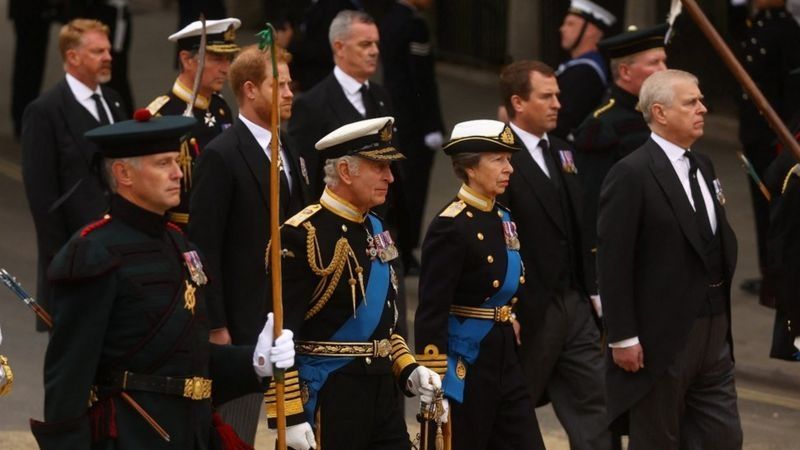 El rey Carlos III, su hermana, la princesa Ana y los príncipes Andrés y Eduardo, también hermanos del nuevo monarca.
