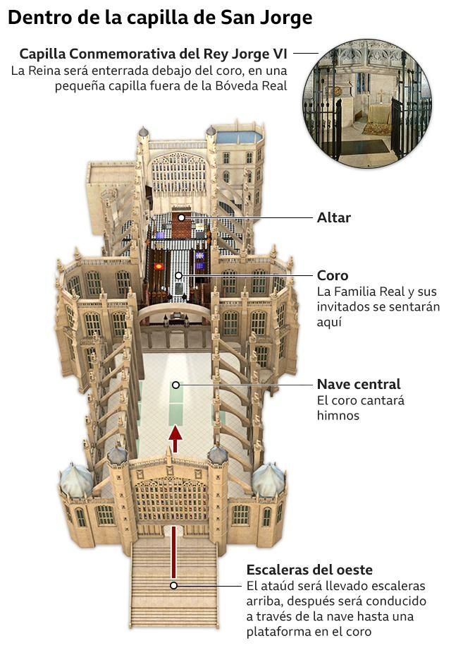 Pero la reina Isabel II no solo estará rodeada de su familia, sino también de toda la historia que contiene el lugar aledaño a su lugar de descanso: la capilla real de San Jorge.